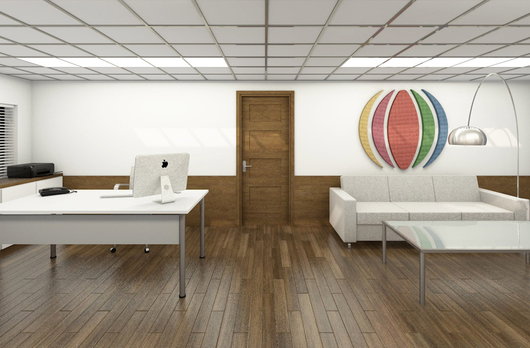 spaces, sometimes in the form of noise absorbing panels, other-times in