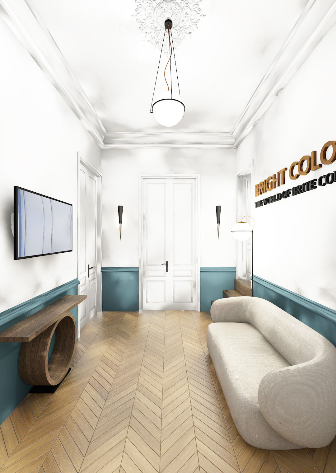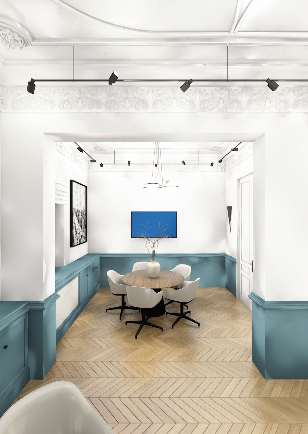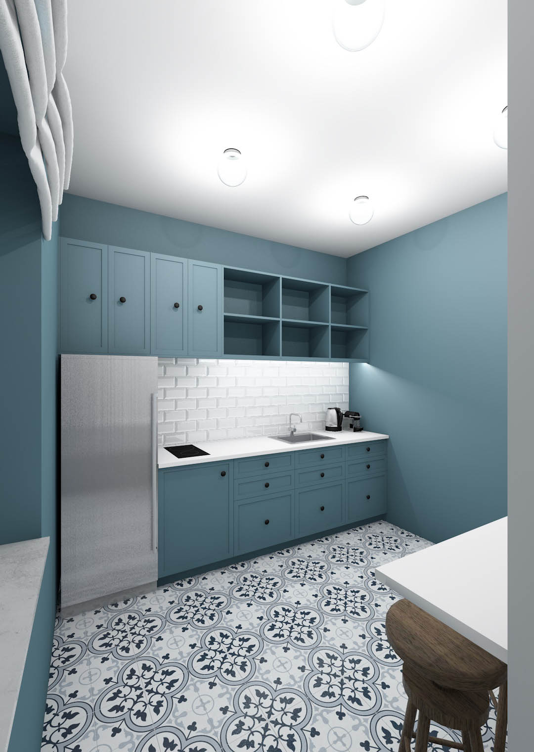 The colour and material palette was inspired by the original features of